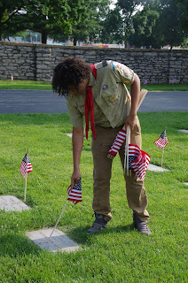 Bishop spent a couple of hours putting flags on veteran's graves at the national cemetery with his scout troop. Afterwards, we went to Steak and Shake, it is our tradition.